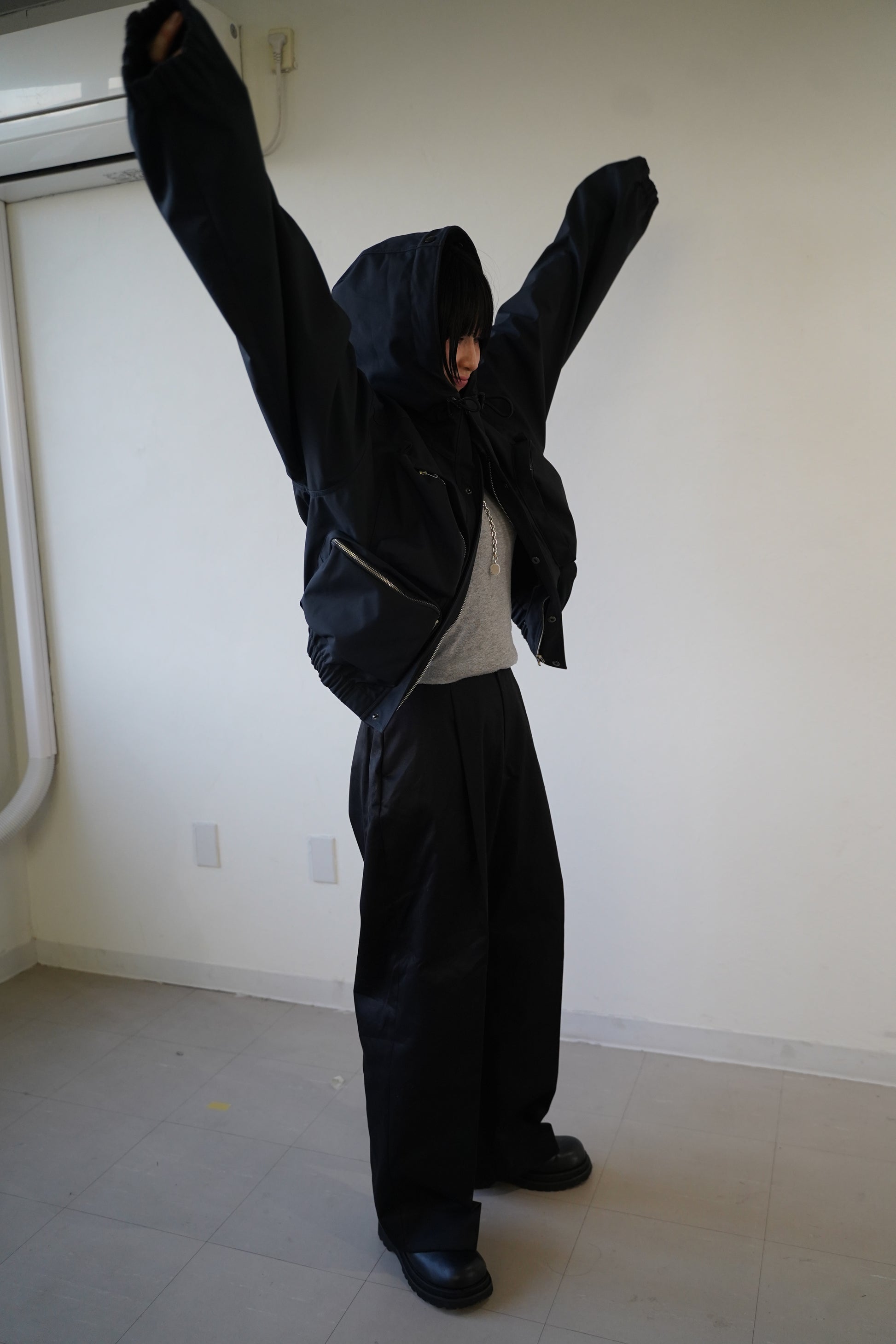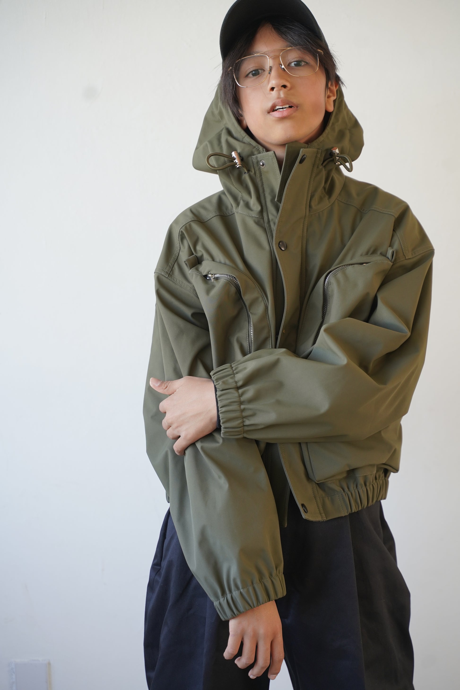 Urizumでは初めてのヘビーアウターです。真冬にも対応できる地厚な生地を使用しています。デザインの特徴としては着丈の短さ、フロント部分のポケットの多さが従来のマウンテンパーカーの土臭さを良い意味で消しています。ZIPもシルバーを使用し、メタリックさもあるので、カジュアルさだけでなく、綺麗なアイテムとの相性も良いアウターです。i色はKHK,NVY、BLKと3色ご用意しております。今回の生地は撥水加工していますので、雨などの時も気にせず使用できます。また地厚な生地は二層の特殊な生地を貼り合わせています。丈夫で、長持ちするアイテムとなっています。今回もサイズは2サイズご用意していますが、着丈や身幅は変わりません。男性が着用できるように袖丈だけ変更しています。もちろん女性であってもMサイズの着用は可能です。袖だけですが、見た目の印象は変わります。ぜひ吟味して選んで頂ければと思います。